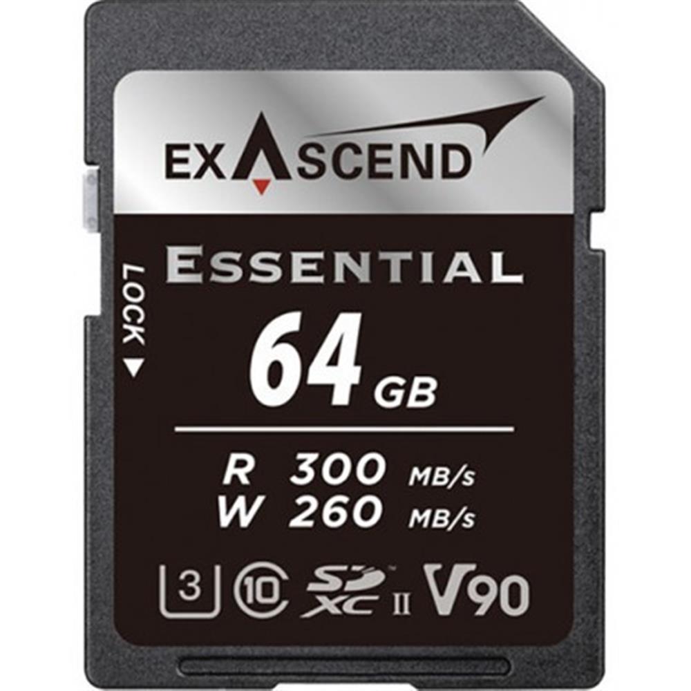 Exascend Essential 64GB SDXC Memory Card U3 UHS-II V90 - 300MB/s Read, 260MB/s Write