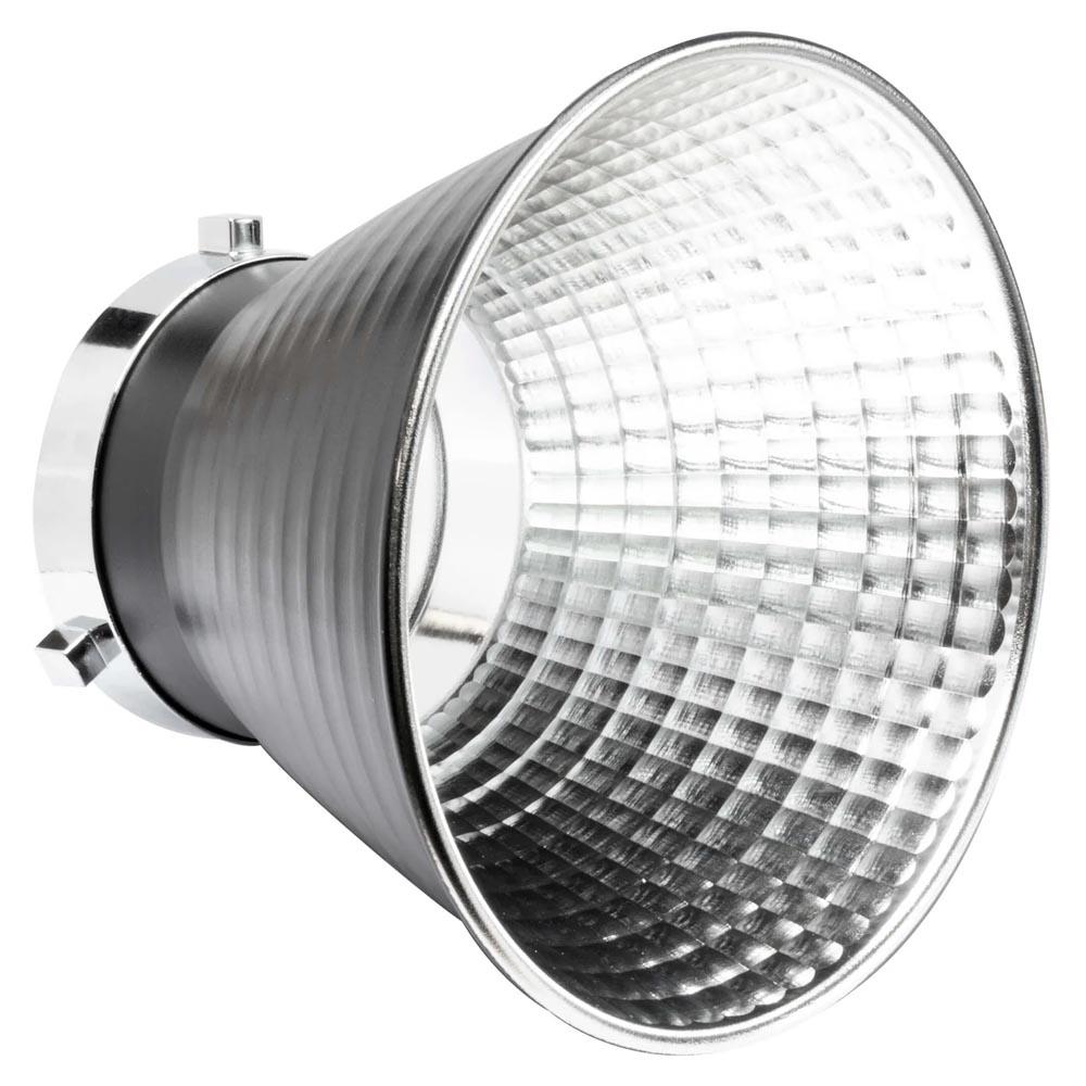 The RFT-19 LED photography studio reflector features a Highly polished faceted silver interior, enabling it to focus light more efficiently producing approximately 2-3 times more light intensity compared to the average 7” reflector. Perfect for photographers, and cinematographers who want to squeeze as much light output from their COB LED light as possible.