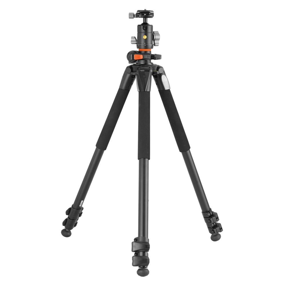 The aluminium alloy legs have three easy set leg angle settings for 25°, 50°, and 80° and lever locks for quick set-up. This full sized tripod weighs in at 2.3g with a 10kg load capacity. The tripod folds to 69.5cm and can be extended up to 1.7m