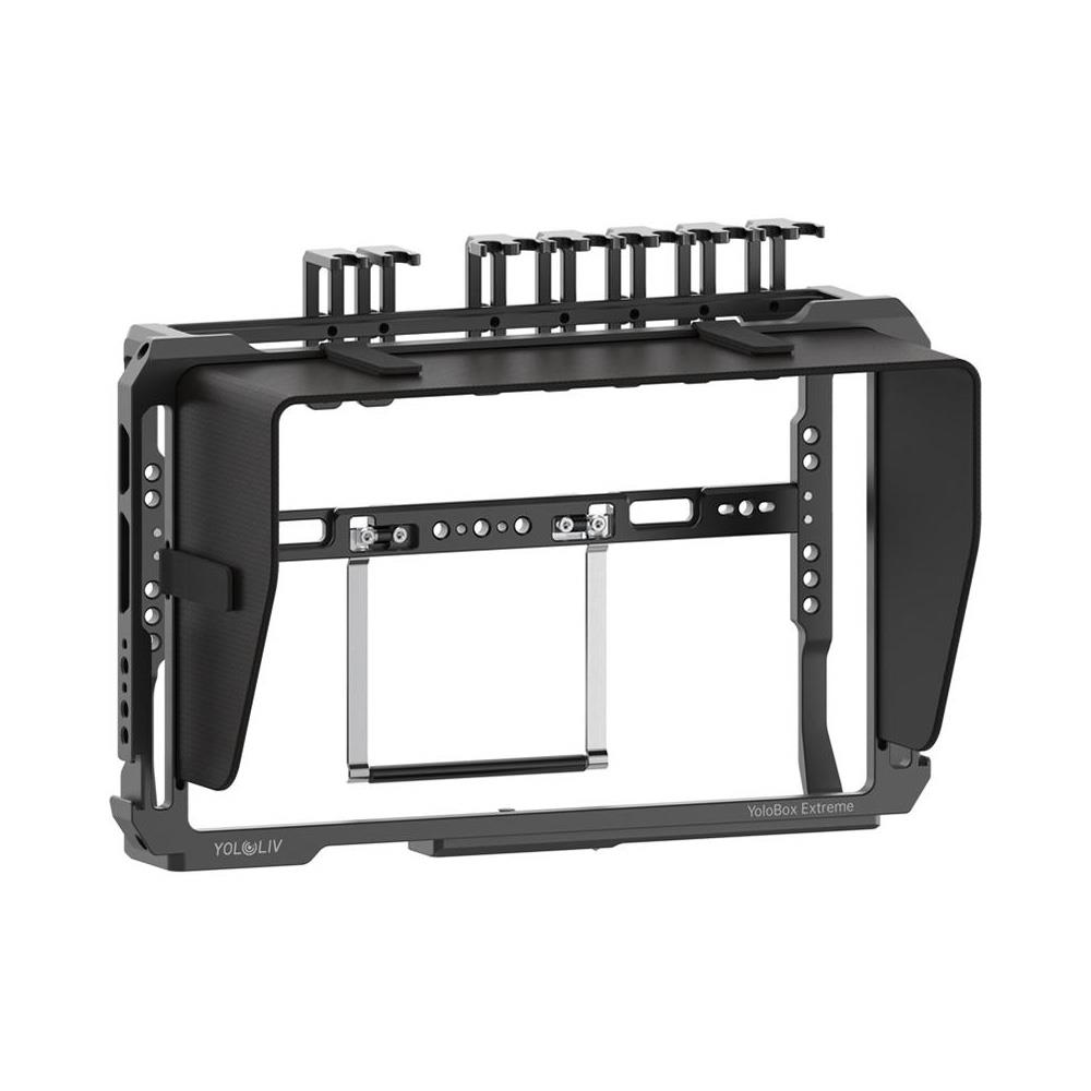 The YoloBox Cage for YoloBox Extreme is a protective aluminium cage that expands mounting and rigging options for the YoloBox Extreme live streaming device. It provides a rigid external frame with multiple accessory mounting points while maintaining full access to the unit’s ports and controls.
